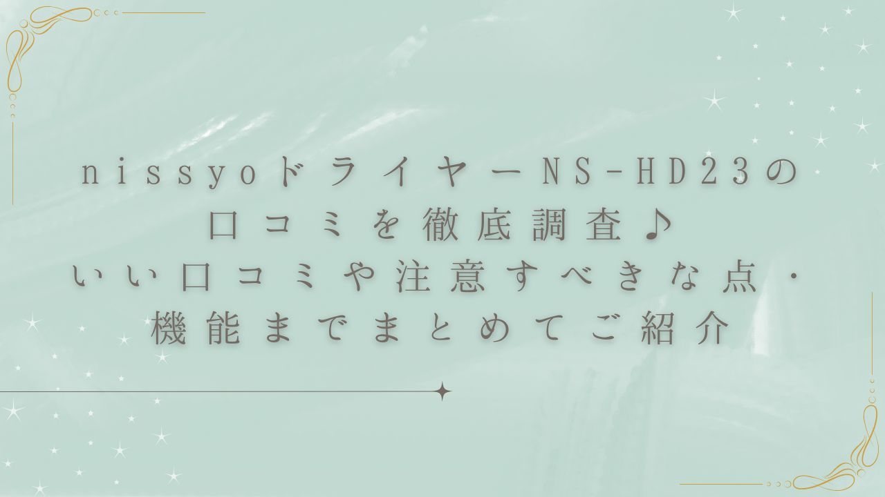 いいところを挙げると、nissyoのドライヤーNS-HD23はかなり魅力的なポイントや口コミも多いです。